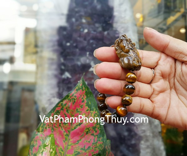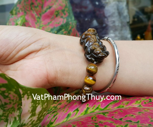 + Chất liệu và hoàn thiện: Chuỗi tỳ hưu chế tác từ đá mắt mèo vân gỗ (hoàn thiện tại Việt Nam).