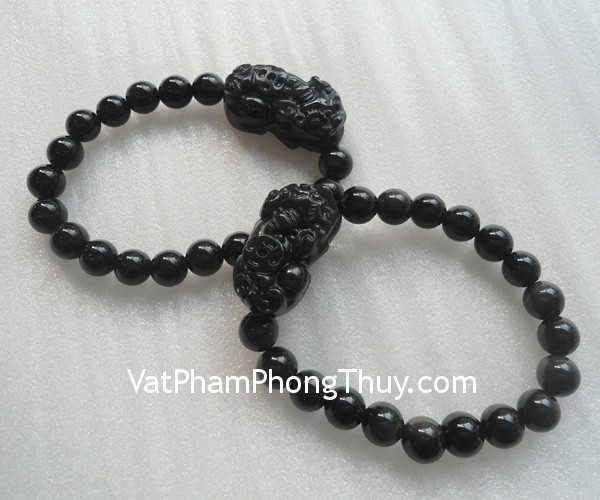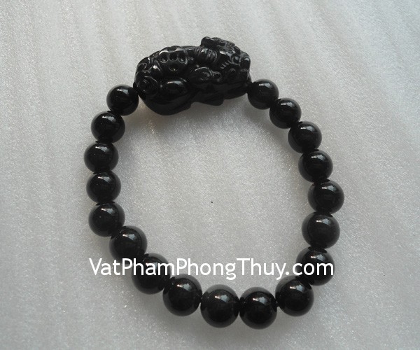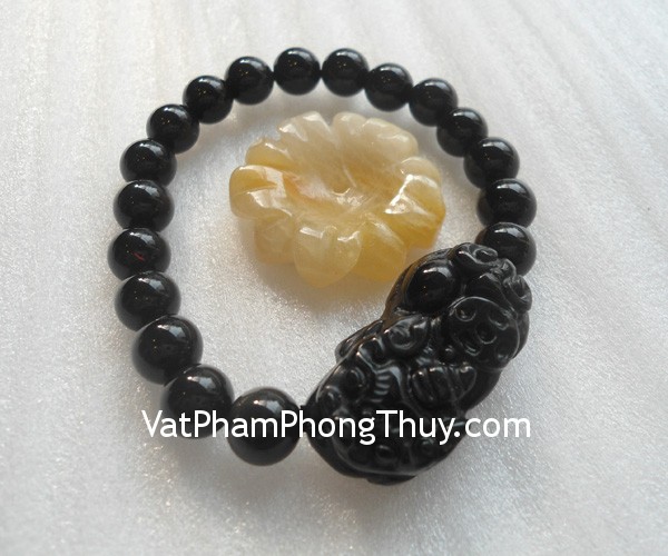+ Chất liệu và hoàn thiện: Chuỗi Tỳ hưu thạch anh đen (đá hắc ngà, onyx).