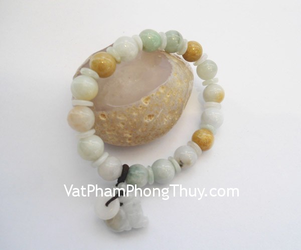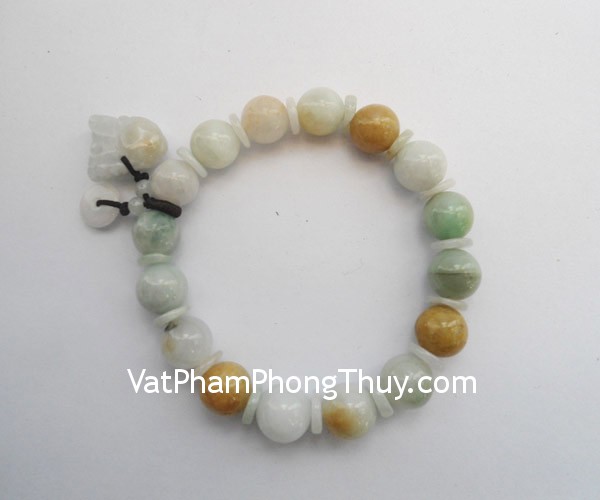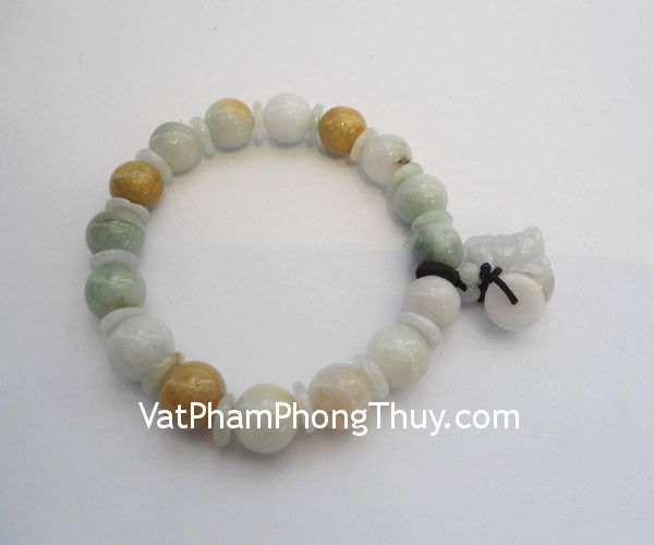 Chất liệu và hoàn thiện: Chuỗi đeo tay tỳ hưu ngọc Phỉ Thúy bi vừa (tại Việt Nam).