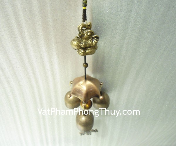 + Chất liệu và hoàn thiện : Chuông gió 3 chuông đồng, voi ôm banh trên dù (tại Việt Nam).