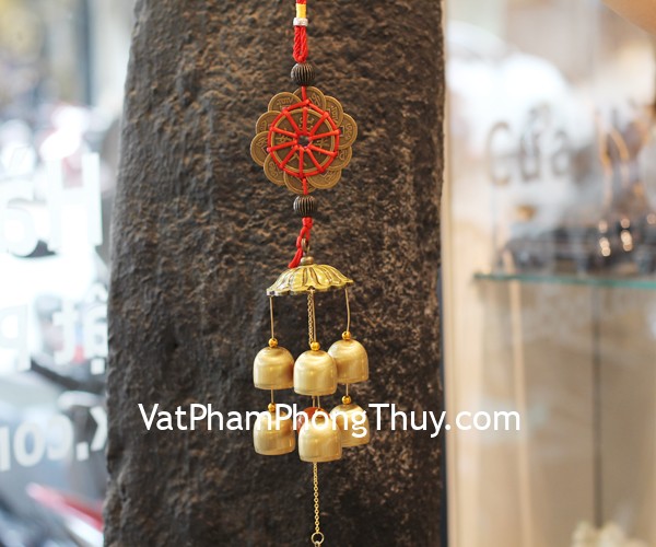 + Chất liệu và hoàn thiện: Chuông gió 6 chuông màu vàng, bằng đồng nguyên chất (tại Việt Nam).