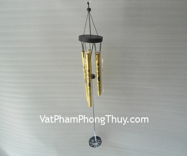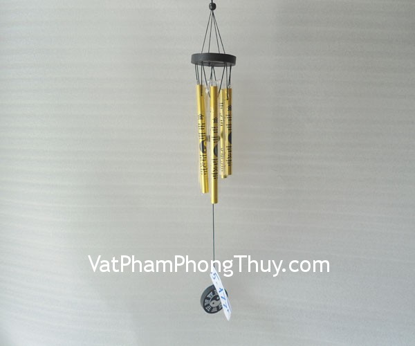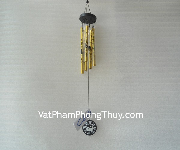 + Chất liệu và hoàn thiện: Chuông gió 5 ống nhôm nhỏ màu vàng, hình bát quái âm dươngHồng Kông).