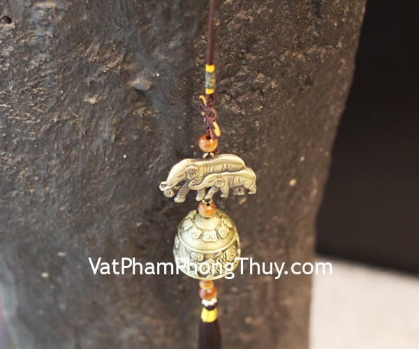 + Chất liệu và hoàn thiện: Chuông gió 1 quả chuông, hình 2 voi (tại Việt Nam).