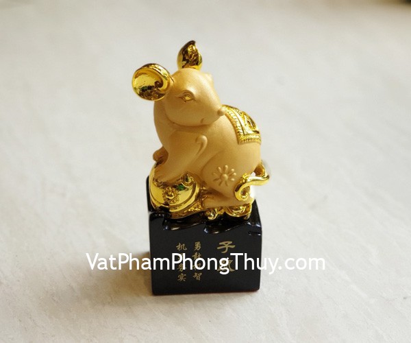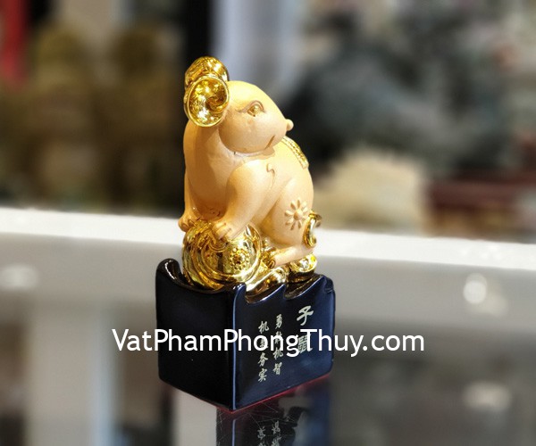 + Chất liệu và hoàn thiện: Tượng chuột (Tý) bột đá kim sa vàng cao cấp (tại Việt Nam).