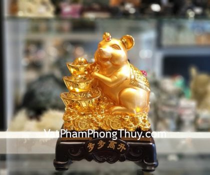 + Chất liệu và hoàn thiện: Tượng chuột (Tý) bột đá mạ vàng cao cấp (tại Việt Nam).