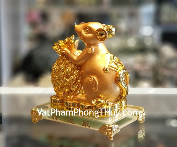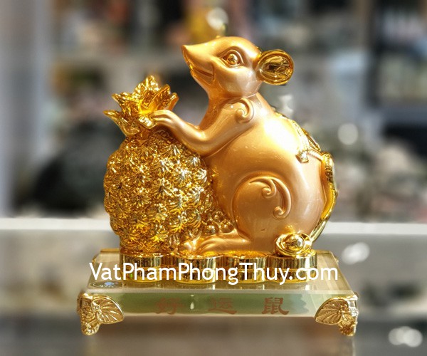 Chuột vàng ôm thơm vàng đế thủy tinh TM020