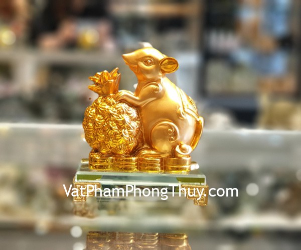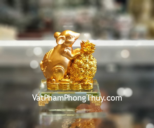 Chuột vàng ôm trái thơm trên đế thuỷ tinh TM031