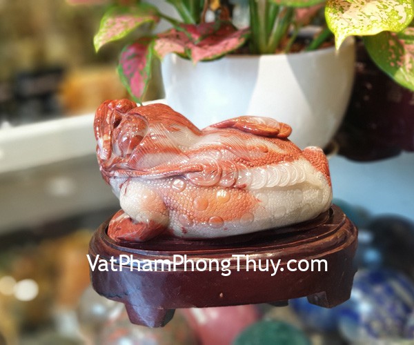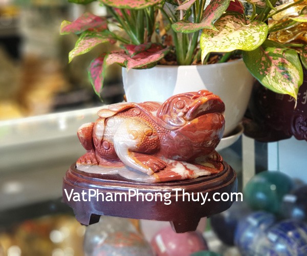 + Chất liệu và hoàn thiện: Thiềm thừ (cóc ba chân) đá ngọc hoàng long tam thể trên đế gỗ (tại Việt Nam).