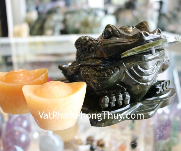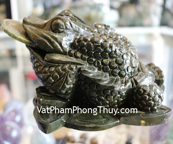 + Chất liệu và hoàn thiện: Thiềm thừ (cóc ba chân) đá Lam Ngọc (tại Việt Nam).