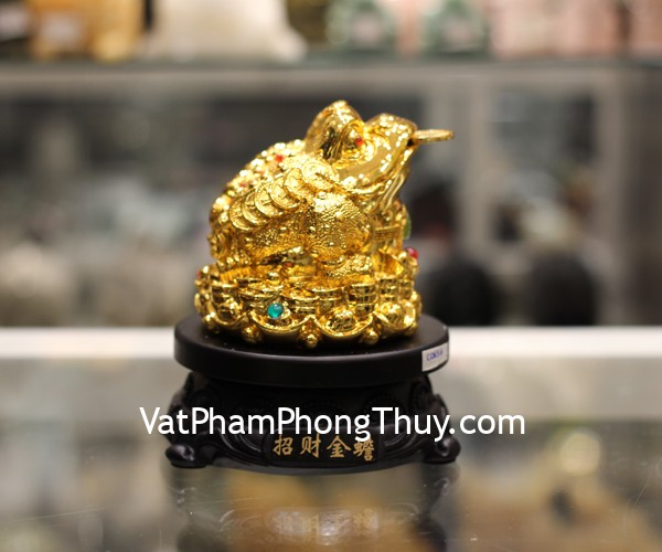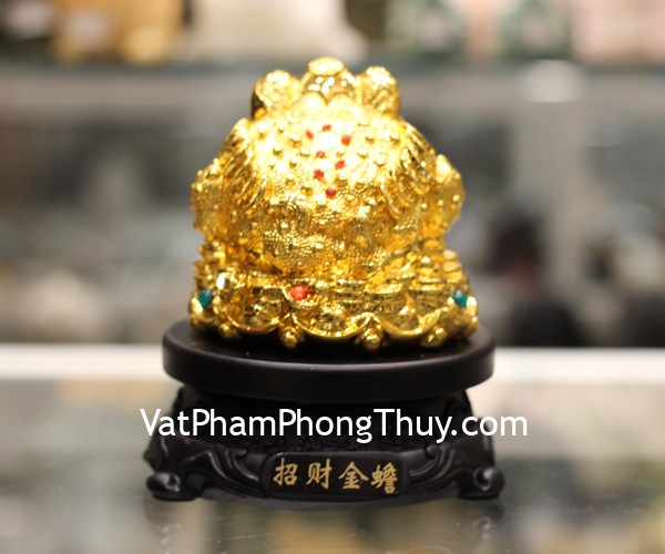 + Chất liệu và hoàn thiện: Thiềm thừ (cóc ba chân) vàng có đế gỗ xoay, bột đá mạ vàng cao cấp (tại Việt Nam).