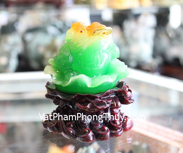 + Chất liệu và hoàn thiện: Thiềm thừ (cóc ba chân) bột đá mạ màu xanh, cõng con trên lưng (tại Việt Nam)