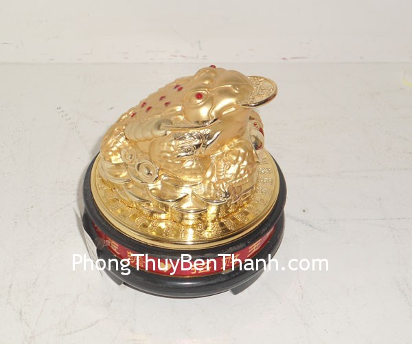 + Chất liệu và hoàn thiện: Thiềm thừ (cóc ba chân) bột đá mạ vàng non (tại Việt Nam).