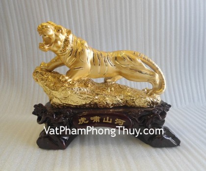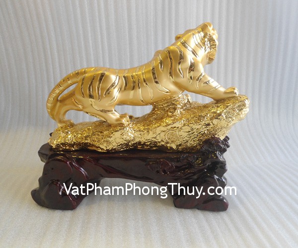 + Chất liệu và hoàn thiện: Tượng con cọp ( dần ) bột đá mạ vàng trên đế gỗ (tại Việt Nam)