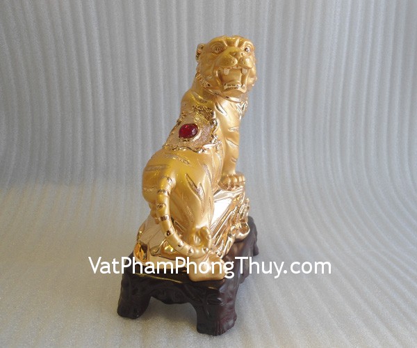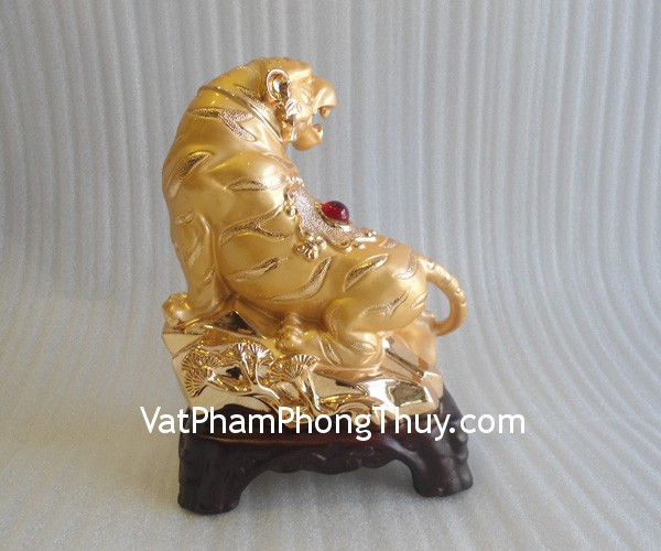 Chất liệu và hoàn thiện: Tượng con cọp ( dần ) bột đá mạ vàng trên đế gỗ nhỏ (tại Việt Nam)