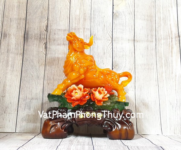 + Chất liệu và hoàn thiện: Tượng trâu cam ngọc trên núi ngọc xanh có hoa mẫu đơn, trên đế gỗ, hàng bột đá màu cao cấp (tại Việt Nam)