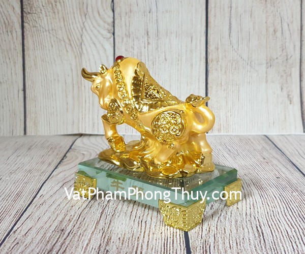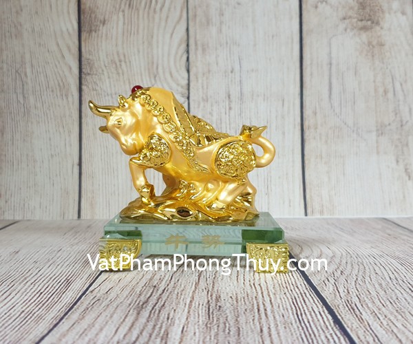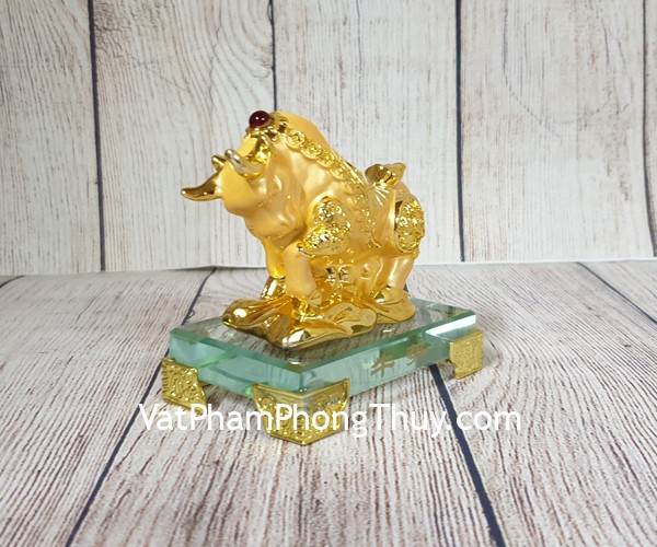 + Chất liệu và hoàn thiện: Tượng trâu vàng dũng mãnh trên đế thủy tinh, hàng bột đá mạ vàng cao cấp (tại Việt Nam)