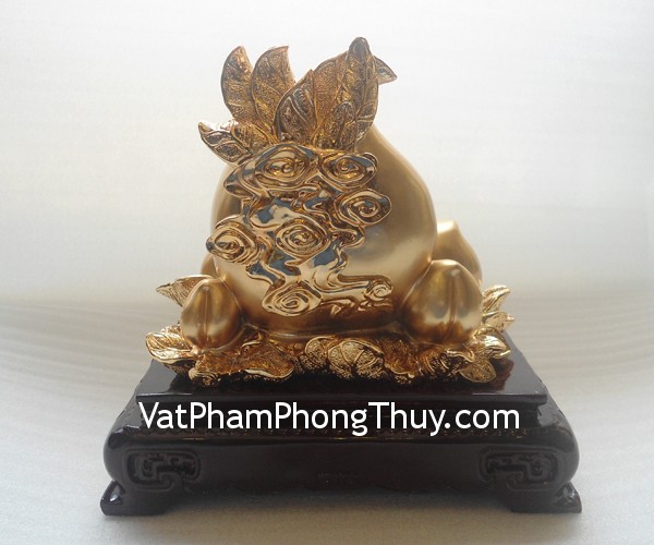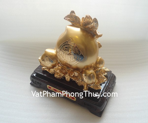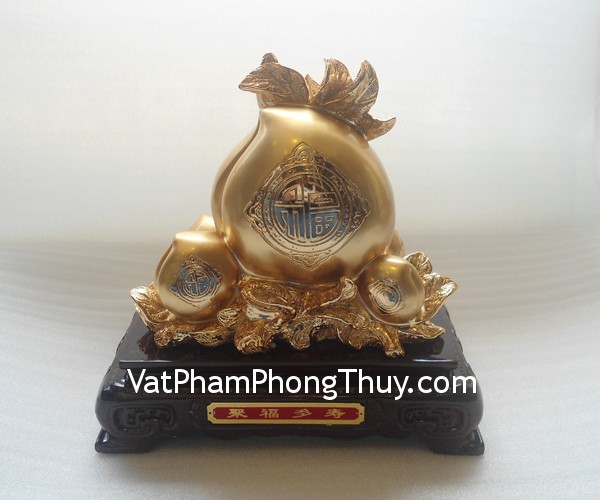 + Chất liệu và hoàn thiện: Quả đào trên đế gỗ bột đá mạ vàng (tại Việt Nam).