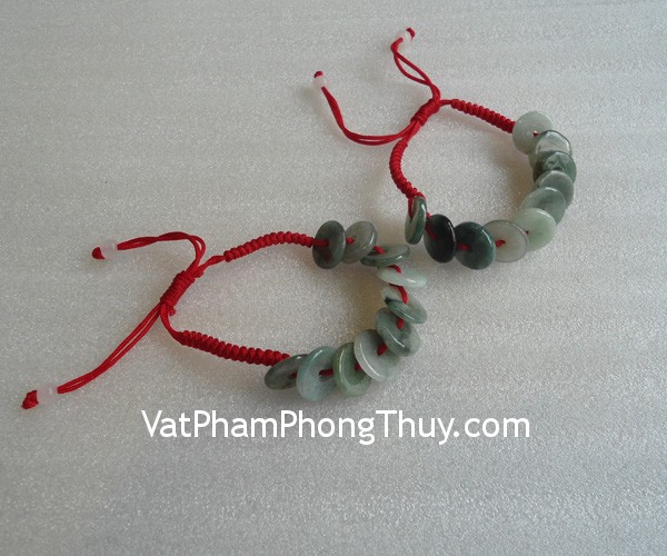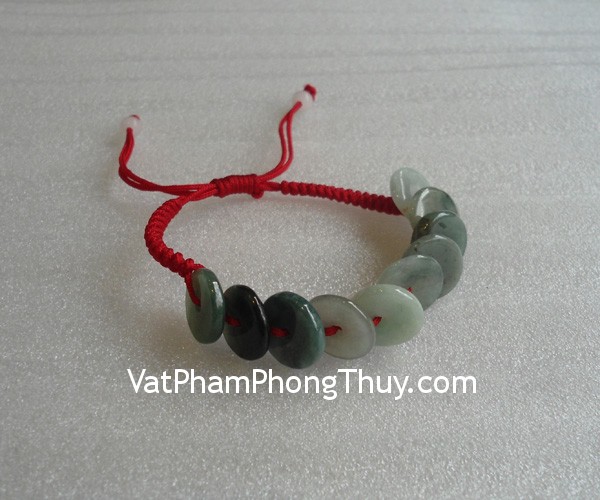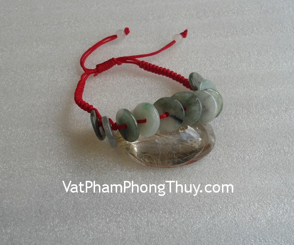 + Chất liệu và hoàn thiện: Vòng tay dây rút màu đỏ, 10 xu tiền đá ngọc Myanmar xanh đậm (Miến Điện, Myanmar).
