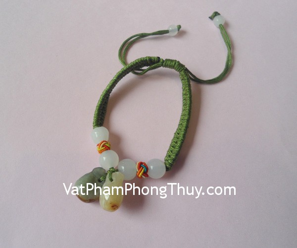 + Chất liệu và hoàn thiện: Dây rút 2 hoa Phật, đá ngọc Miến Điện dây màu xanh (tại Việt Nam).