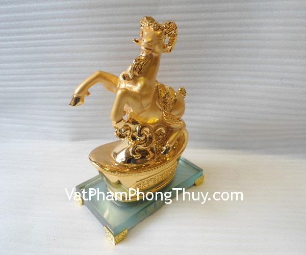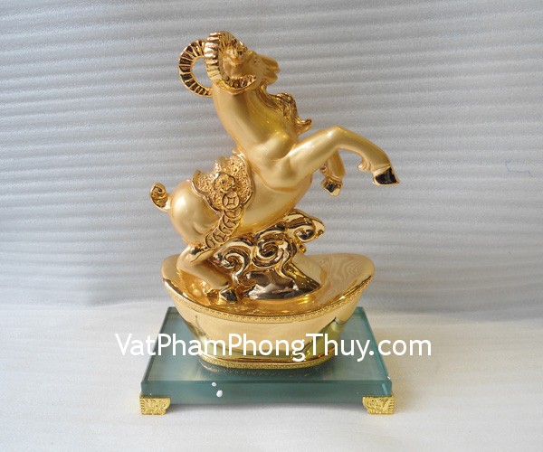 + Chất liệu và hoàn thiện: Dê vàng nguyên bảo trên đế thủy tinh lớn, bột đá mạ vàng non (tại Việt Nam)