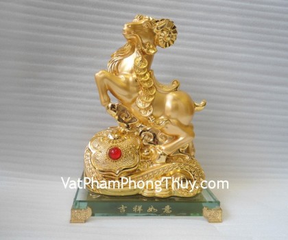 + Chất liệu và hoàn thiện: Dê vàng trên gậy như ý, bột đá mạ vàng (tại Việt Nam)