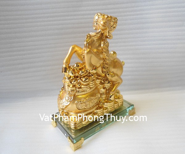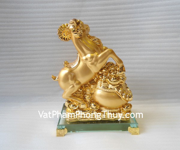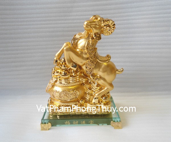 + Chất liệu và hoàn thiện: Dê vàng tụ bảo trên đế thủy tinh lớn, bột đá mạ vàng non (tại Việt Nam)