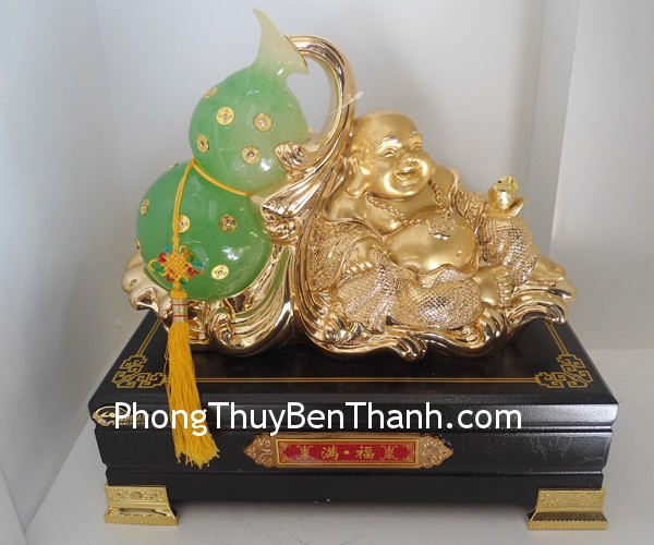 + Chất liệu và hoàn thiện: Phật di lạc bột đá mạ vàng non (tại Việt Nam).