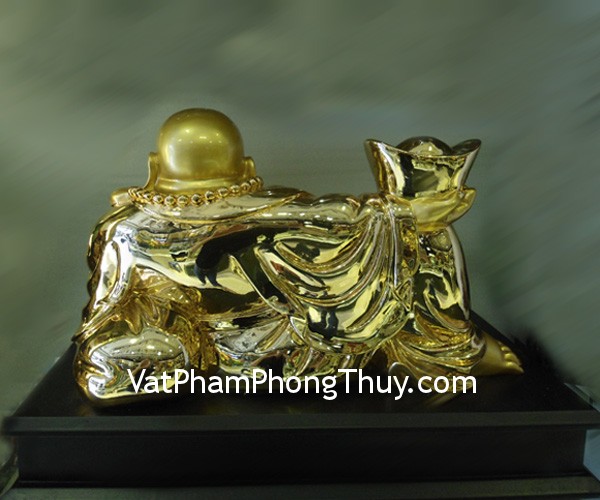 + Chất liệu và hoàn thiện: Tượng Phật Di lạc ngồi cầm nén vàng, bột đá mạ vàng non (tại Việt Nam).