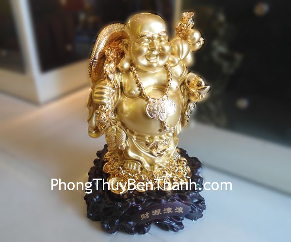 + Chất liệu và hoàn thiện: Phật di lạc bột đá mạ vàng non (tại Việt Nam).