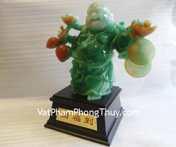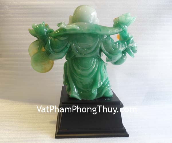 + Chất liệu và hoàn thiện: Tượng Phật Di lạc đứng, gánh trên lưng trái đào và đồng tiền, bột đá màu (tại Việt Nam).
