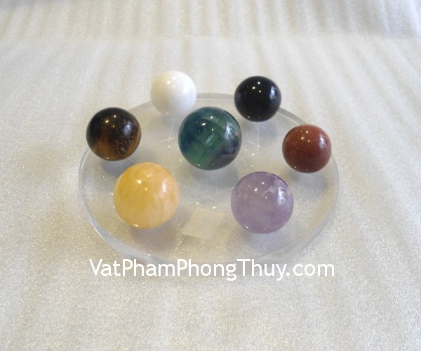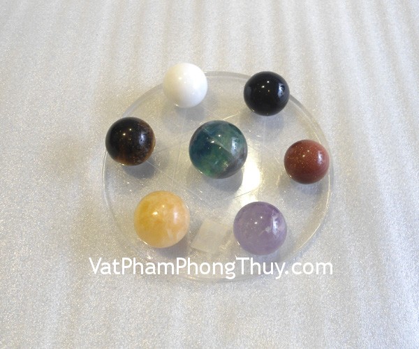 + Chất liệu và hoàn thiện: Đĩa thất tinh quả cầu đá tự nhiên, đế mica.