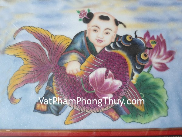 + Chất liệu và hoàn thiện : Tranh đồng tử ôm cá chép – Tranh đá quý Lục Yên