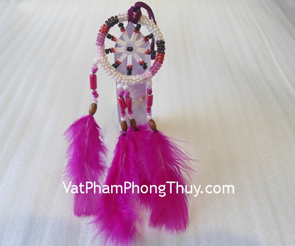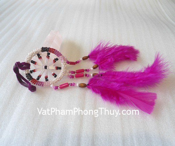 + Chất liệu : Dream Catcher (bùa đuổi bắt giấc mơ đẹp) kết dây vải, kèm lông vũ màu hồng đậm (USA).