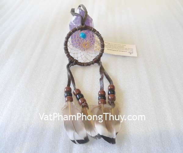 + Chất liệu : Dream Catcher (bùa đuổi bắt giấc mơ đẹp) kết dây vải, kèm lông vũ màu nâu xám (USA).