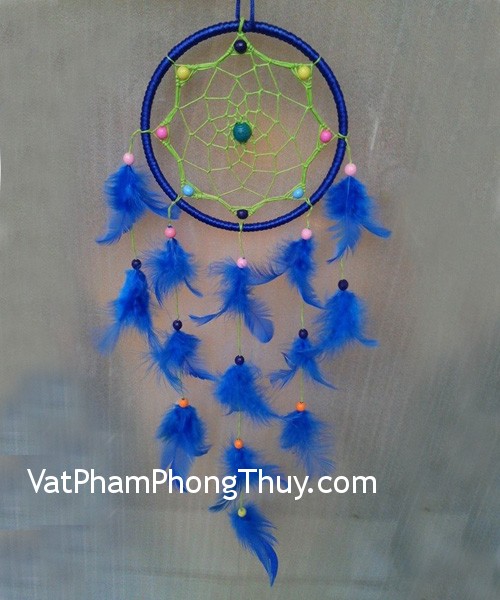 + Chất liệu : Dream Catcher (bùa đuổi bắt giấc mơ đẹp) kết dây vải, kèm lông vũ màu xanh dương.