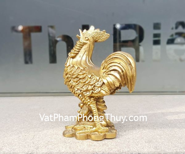 + Chất liệu và hoàn thiện: Tượng gà đồng lông dát tiền vàng, đồng nguyên (tại Việt Nam).
