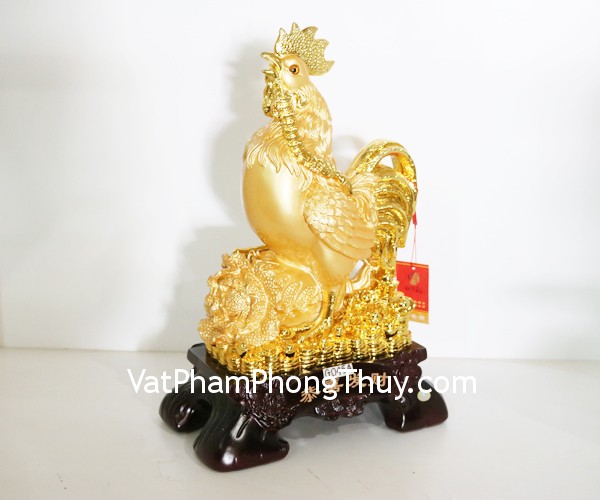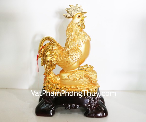 + Chất liệu và hoàn thiện: Tượng gà vàng đứng trên bắp cải vàng, hàng bột đá mạ vàng cao cấp (tại Việt Nam)