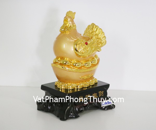 + Chất liệu và hoàn thiện: Tượng gà mái vàng ấp trứng trên kim ngân bảo, có đế gỗ, hàng bột đá mạ vàng cao cấp (tại Việt Nam)
