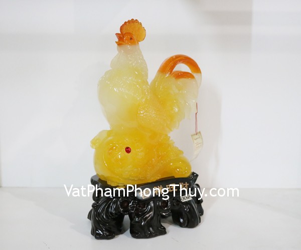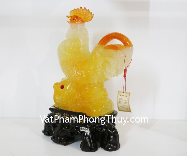 + Chất liệu và hoàn thiện: Tượng gà ngọc vàng trên như ý vàng, hàng bột đá màu cao cấp (tại Việt Nam)