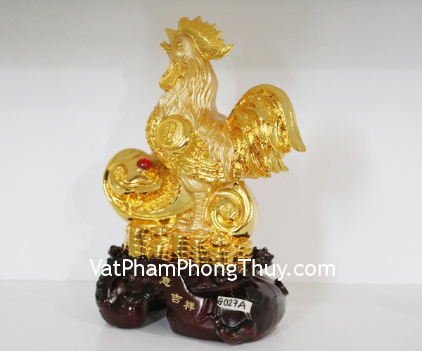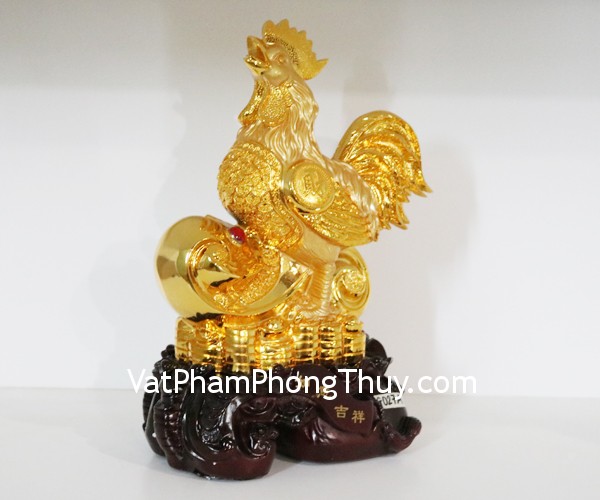 + Chất liệu và hoàn thiện: Tượng gà vàng trên gậy như ý, hàng bột đá mạ vàng non cao cấp (tại Việt Nam)