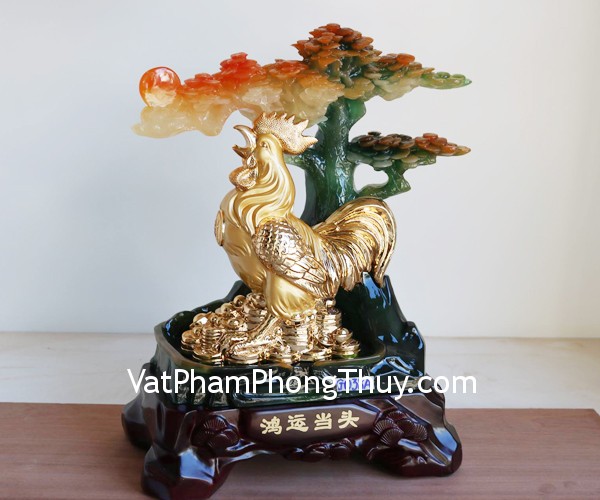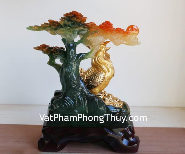 + Chất liệu và hoàn thiện: Tượng gà vàng đứng bên cây tài lộc xanh cỡ lớn, hàng bột đá mạ vàng non cao cấp (tại Việt Nam)