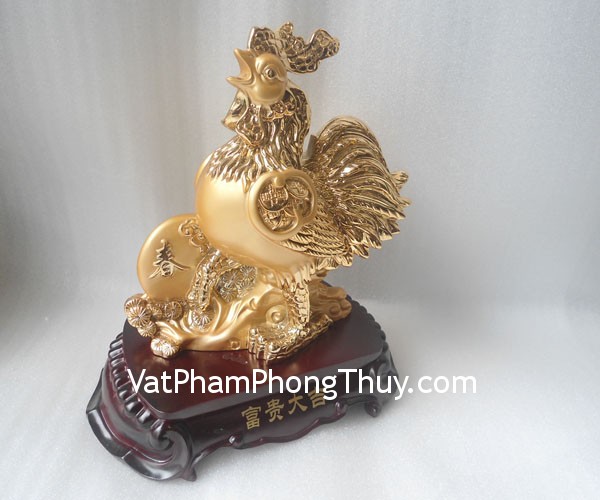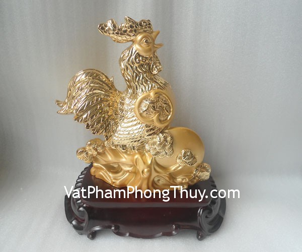 + Chất liệu và hoàn thiện: Tượng gà trống đứng trên đế gỗ, bột đá mạ vàng non (tại Việt Nam).