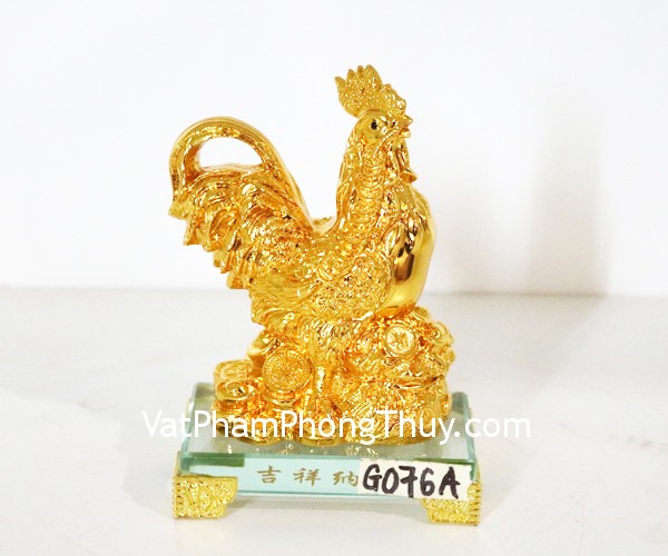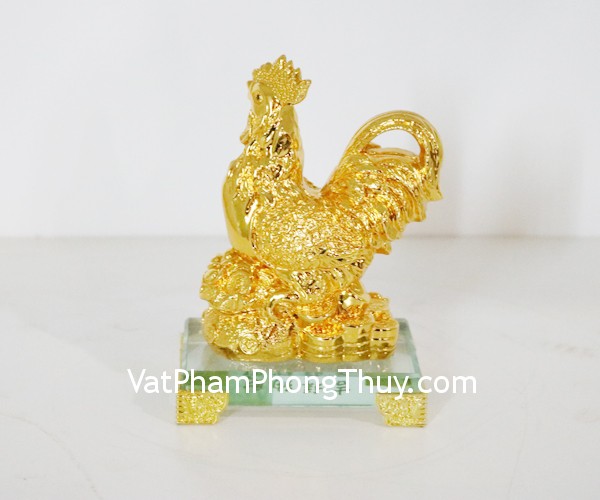 + Chất liệu và hoàn thiện: Tượng gà vàng đứng trên túi vàng, đế thủy tinh, hàng bột đá mạ vàng cao cấp (tại Việt Nam)