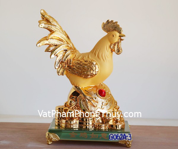 + Chất liệu và hoàn thiện: Tượng gà vàng đuôi vểnh, đế thủy tinh, hàng bột đá mạ vàng cao cấp (tại Việt Nam)