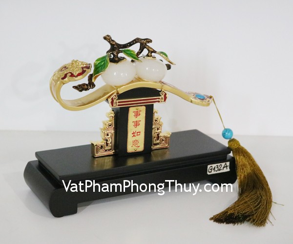+ Ý nghĩa : Sự Sự Như Ý – Tăng thêm công danh, uy quyền, địa vị, hóa giải điều thị phi, mọi việc như ý suôn sẻ. Quyền trượng gậy như ý là một công cụ phong thủy tốt cho các nhà quản lý và lãnh đạo. Khi được đặt trong nhà, quyền trượng là công cụ có ảnh hưởng rất tốt cho người chủ gia đình. Khi kết hợp với quả đào phong thủy đem lại bình an, sức khỏe và tuổi thọ.