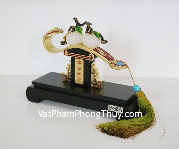 + Chất liệu và hoàn thiện : gậy như ý hợp kim vàng có quả đào bạch ngọc cỡ nhỏ (tại Việt Nam).