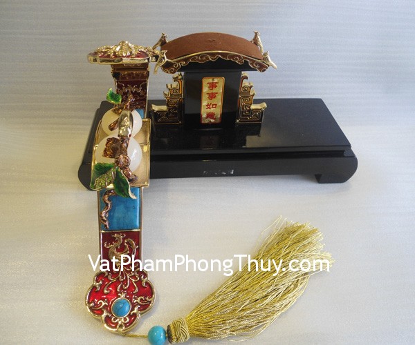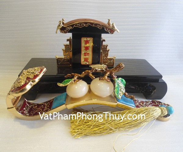 + Chất liệu và hoàn thiện : Gậy như ý bằng hợp kim vàng, trái đào bằng Bạch Ngọc (tại Việt Nam).