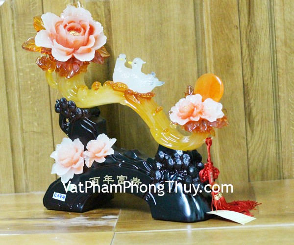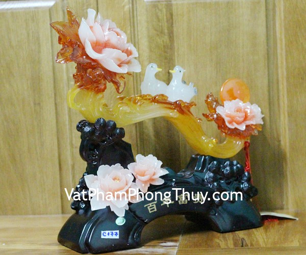 + Chất liệu và hoàn thiện: Gậy như ý bên hoa mẫu đơn có chim uyên ương, đế gỗ, hàng bột đá màu cao cấp (tại Việt Nam).
