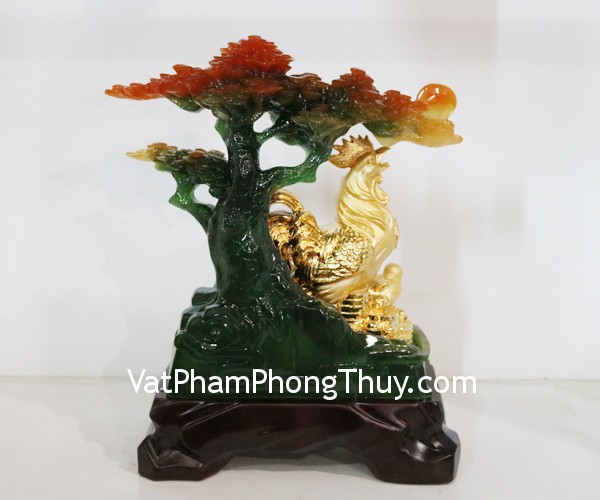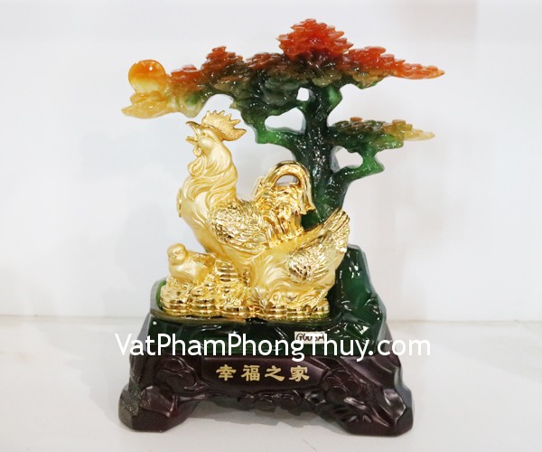 + Chất liệu và hoàn thiện: Tượng gia đình gà vàng bên cây tài lộc xanh, hàng bột đá mạ vàng non cao cấp (tại Việt Nam)