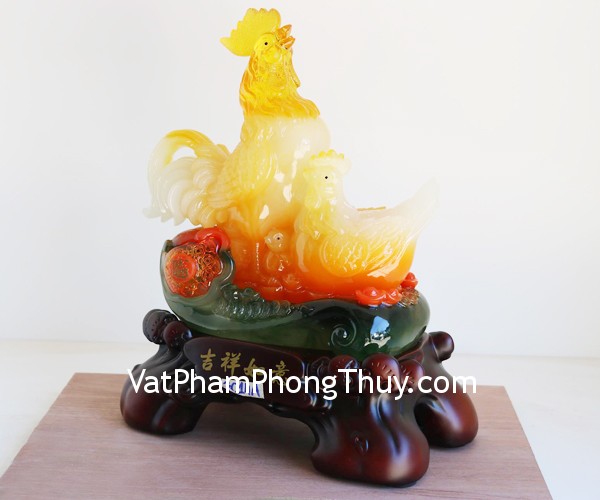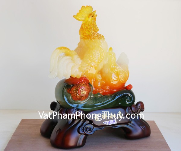 + Chất liệu và hoàn thiện: Tượng gia đình gà lưu ly vàng ngọc trên gậy như ý, hàng bột đá màu cao cấp (tại Việt Nam)